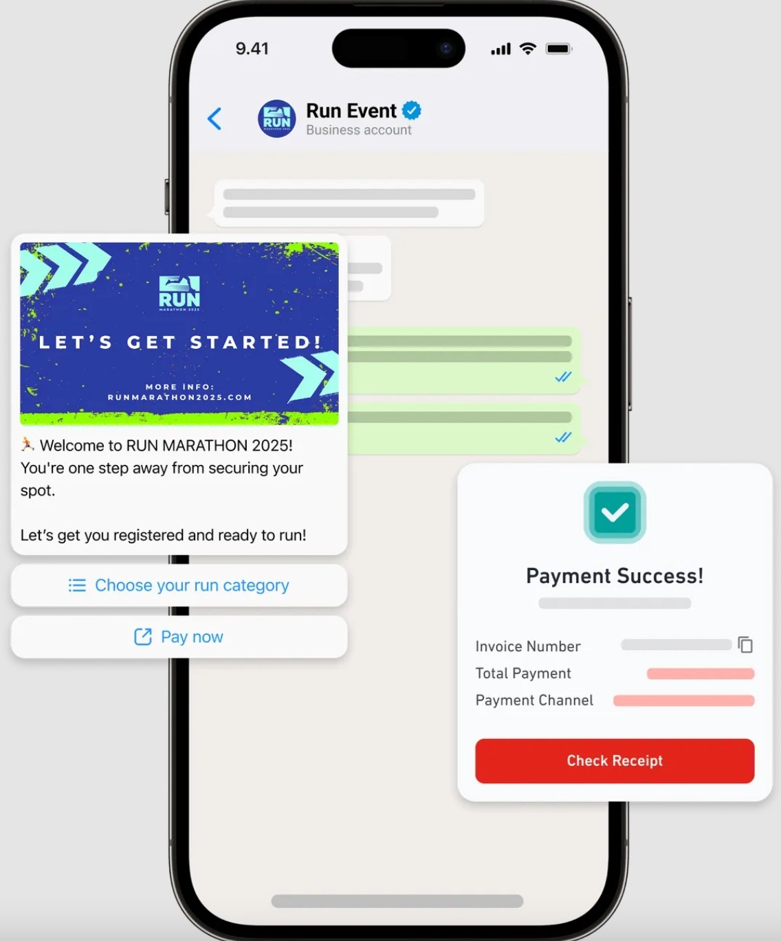 Terima pembayaran langsung di WhatsApp Business, tanpa perlu pengaturan yang rumit. Cukup buat alur chat dan atur message bot sesuai kebutuhan, bagikan link atau QR code, dan mulai ubah percakapan jadi transaksi. Cari tahu lebih banyak lewat pilihan berikut: