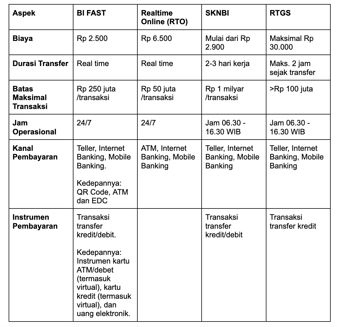 Perbedaan BI-FAST dengan Realtime Online, BI-RTGS, SKNBI