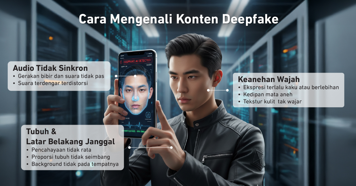 Waspada terhadap narasi darurat seperti “akun Anda terblokir” atau “ada transaksi mencurigakan.” Jangan terburu-buru mengikuti instruksi, tetap tenang, lalu verifikasi kebenarannya hanya melalui kontak resmi di situs atau aplikasi perusahaan, bukan dari iklan, SMS, atau hasil pencarian yang meragukan. - Kenali tanda deepfake